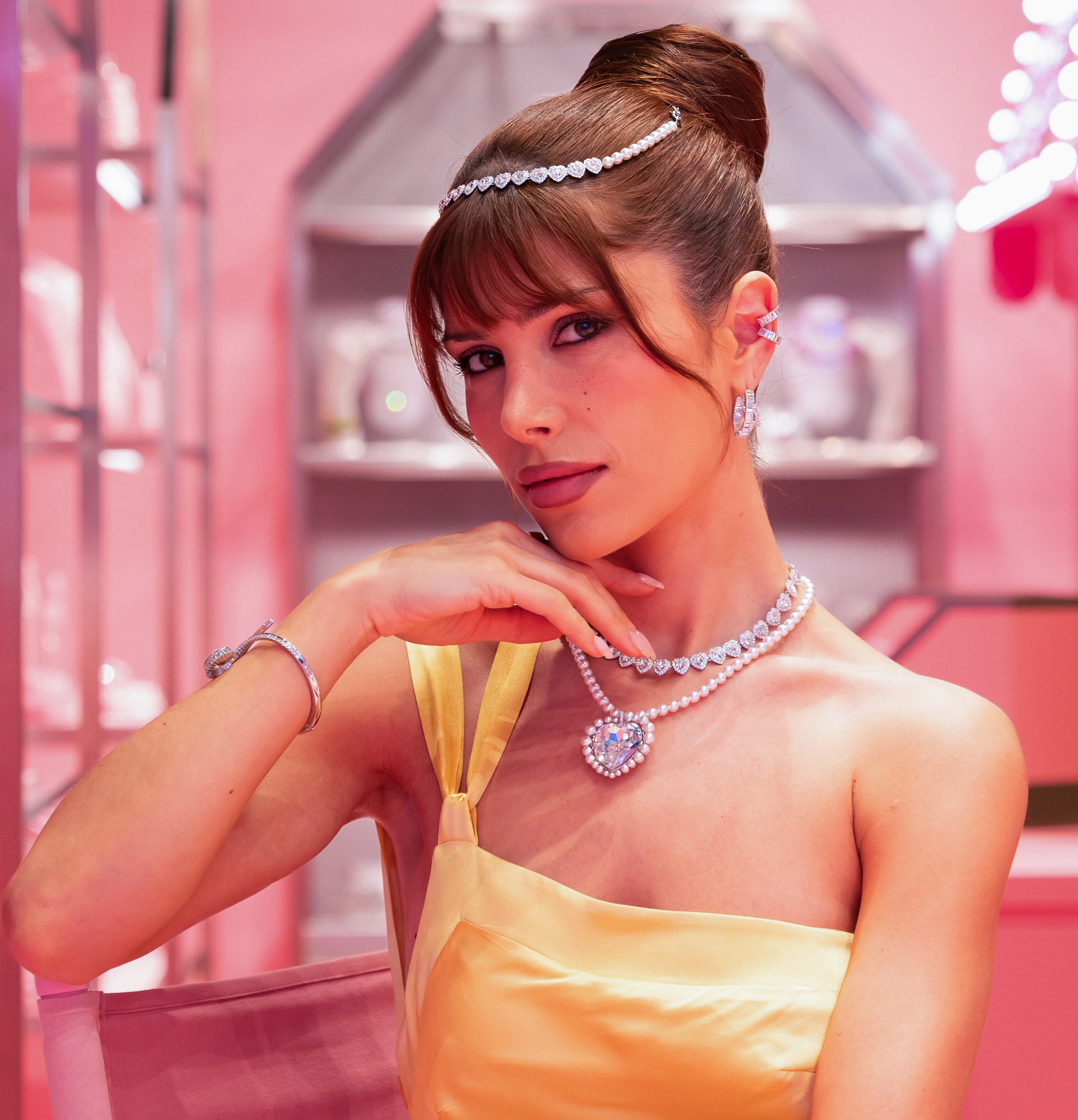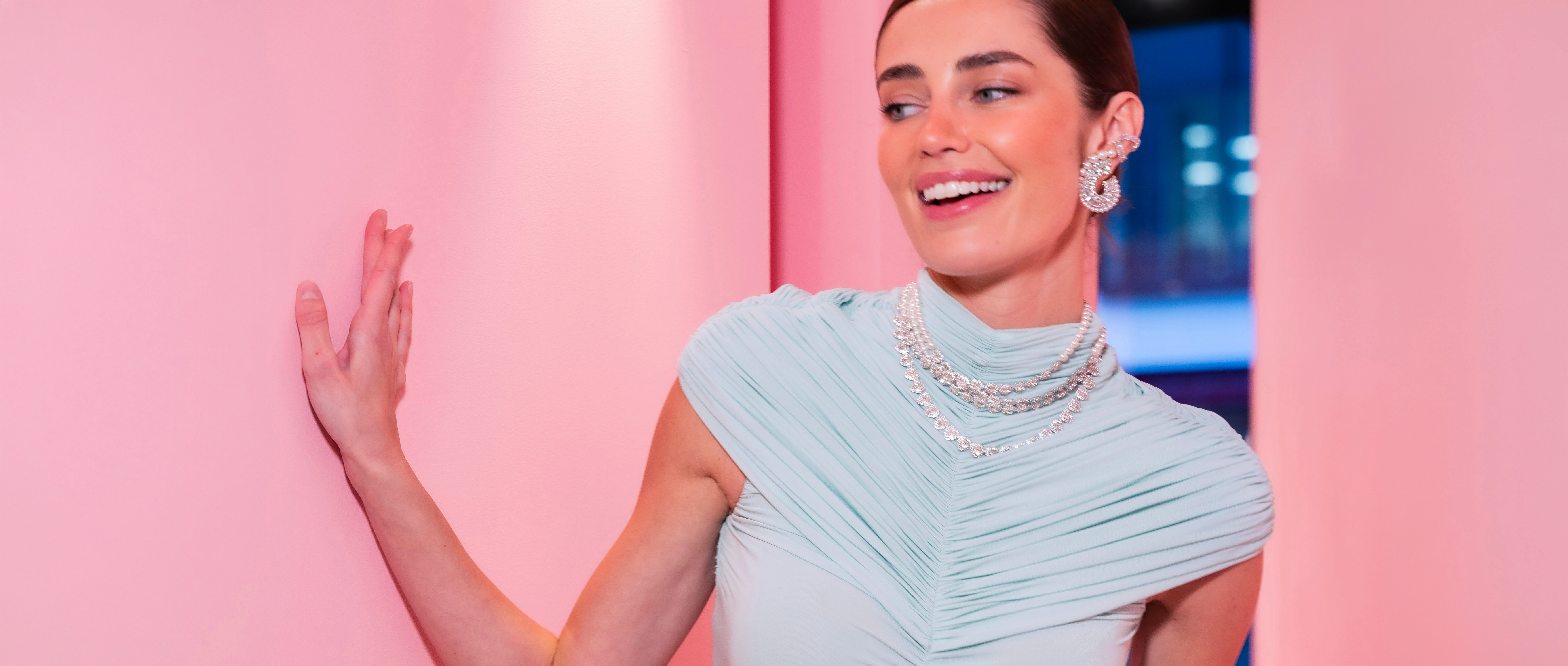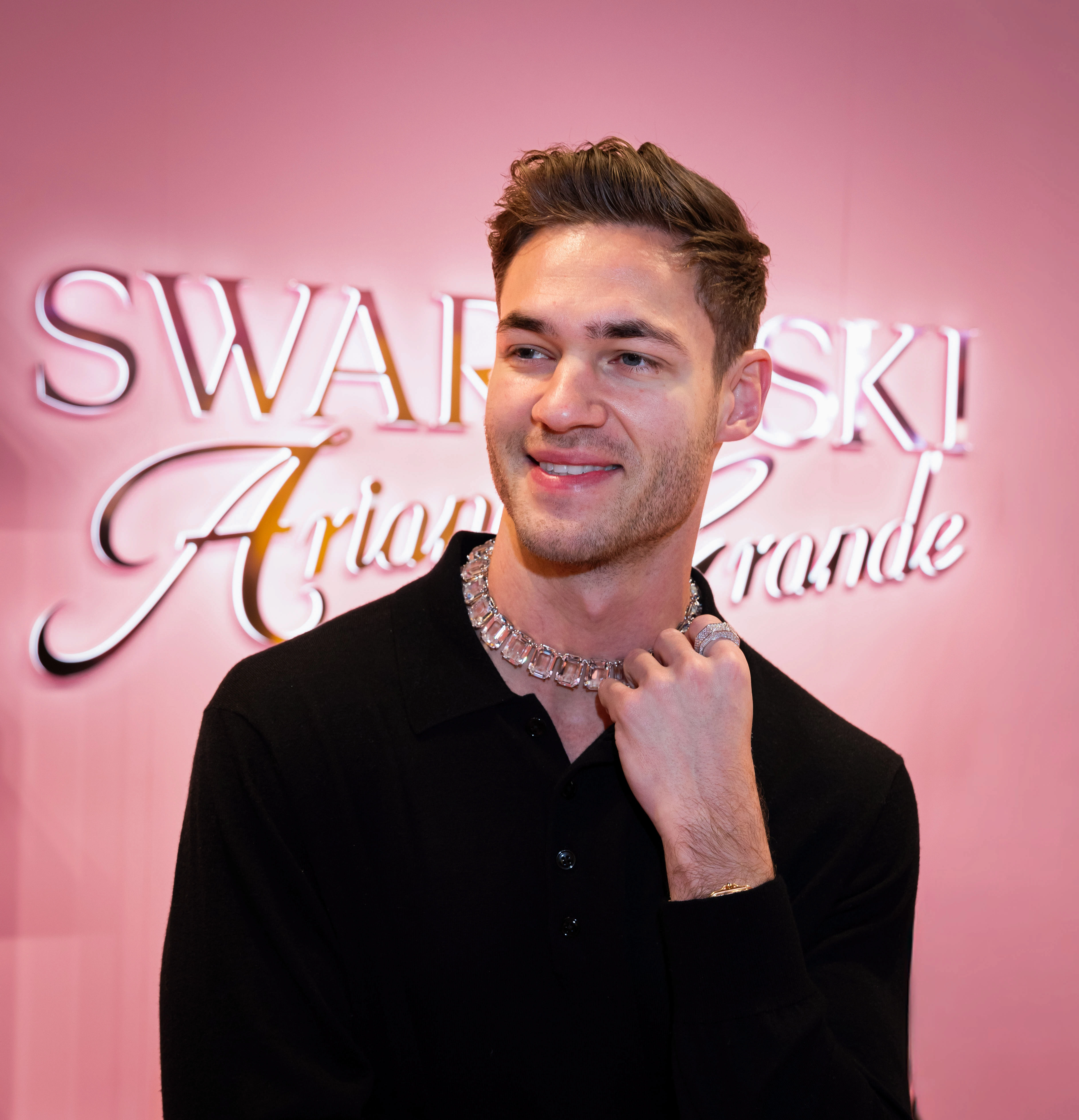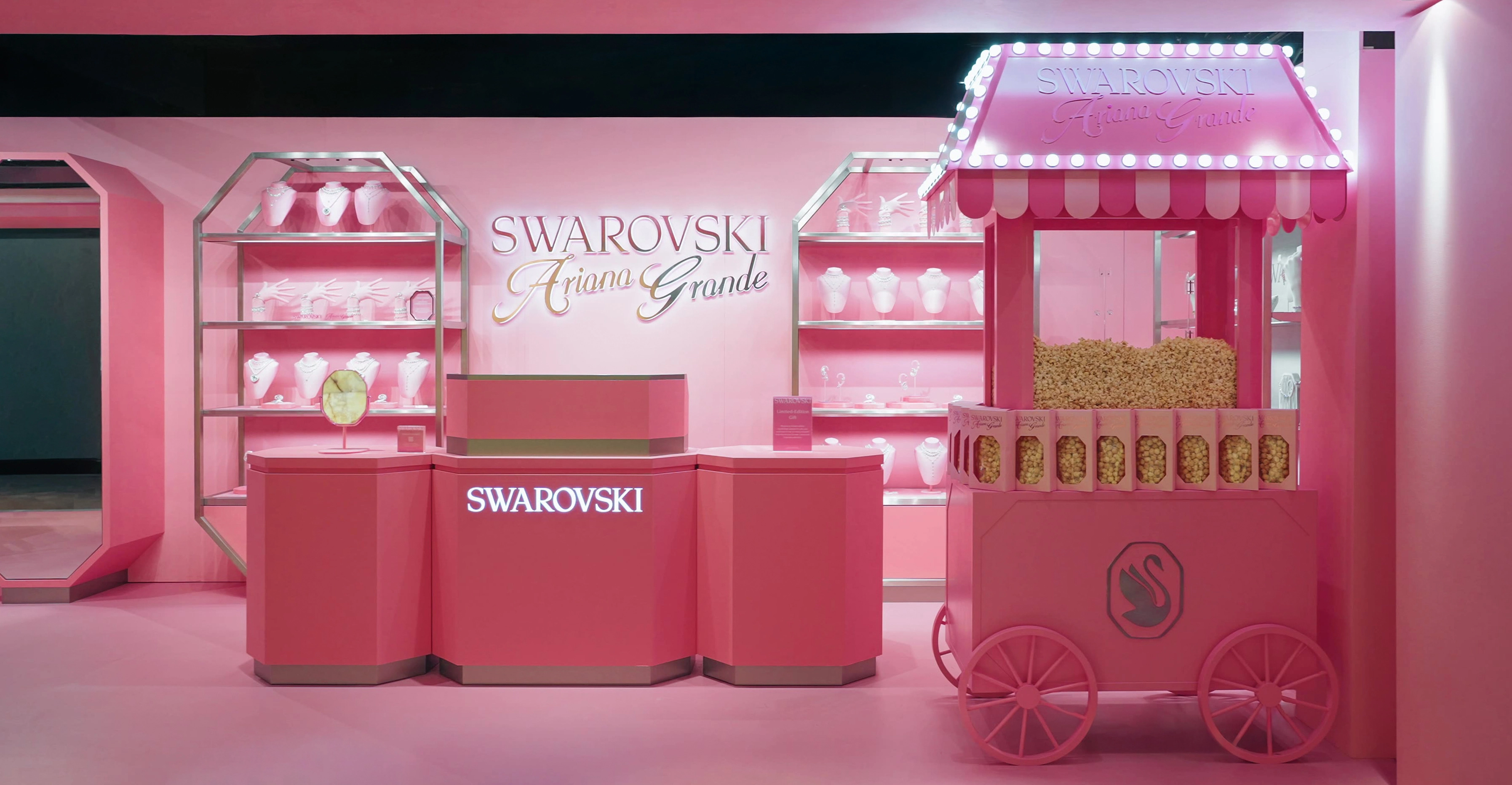 Swarovski launched the Swarovski x Ariana Grande capsule. The look was clean and editorial, with a soft pink palette, polished portraits, and hero details that let the pieces do the talking.